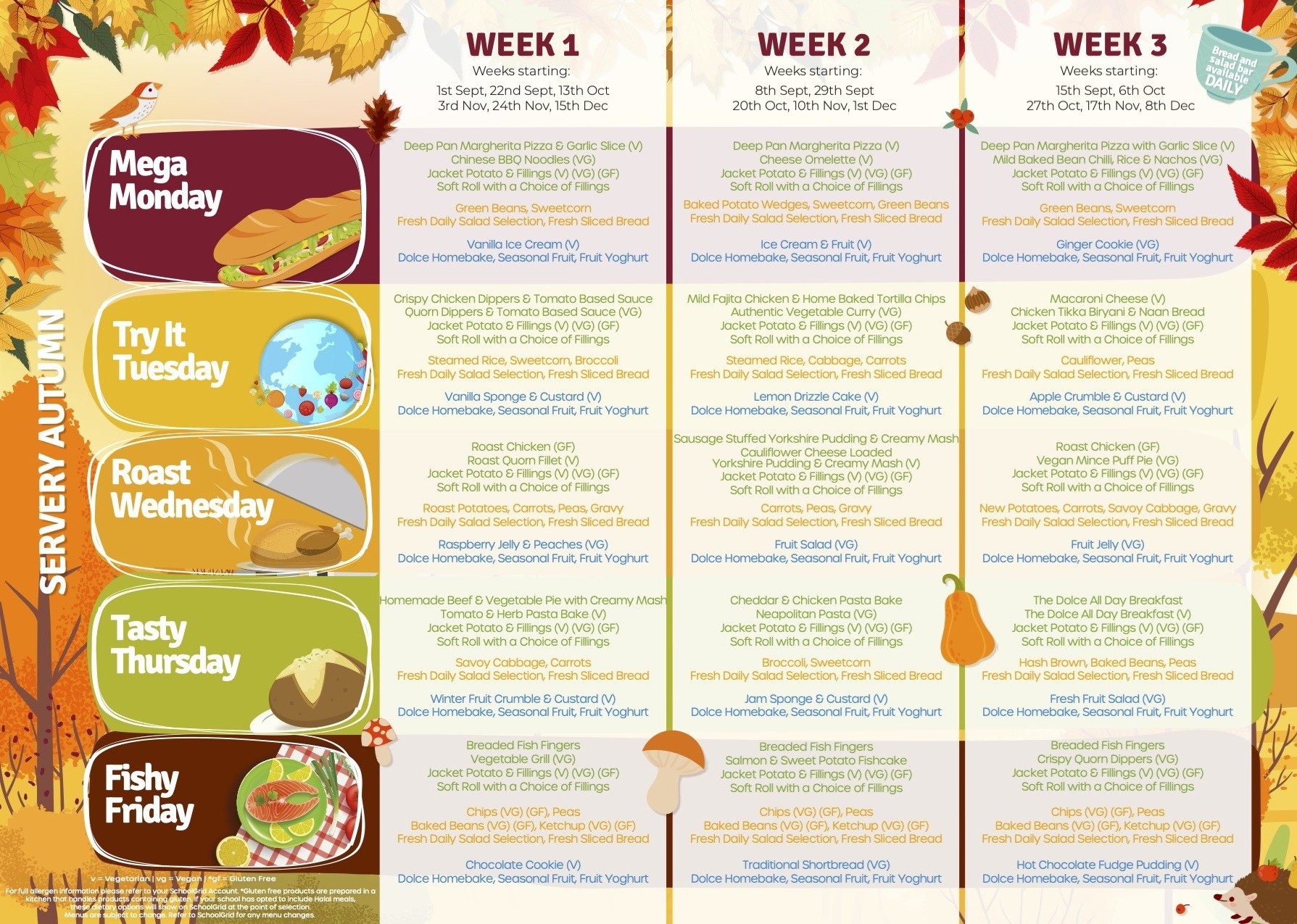 Orders must be placed by 8:40 each day otherwise the child/children will need to have a packed lunch brought in for them. You are able to pre-order meals for the week if this will save time and hassle for the busy mornings.